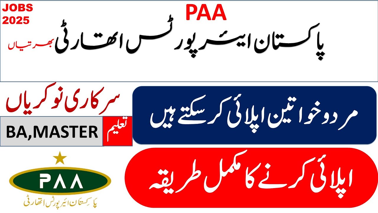 Pakistan Airport Authority PAA Jobs 2025 PAA Latest Career Opportunities are announced through an advertisement published in Newspapers. PAA (Pakistan Airport Authority) Jobs 2025 across Pakistan, Males and Females. PAA Jobs 2025 is hiring, applications from dynamic, Qualified, motivated, Committed, and Experienced Professionals to fill vacant Positions.